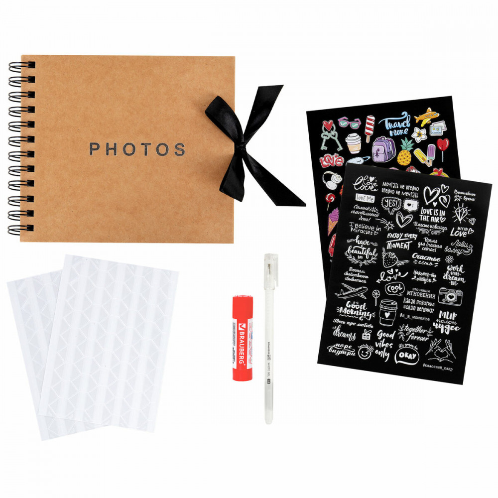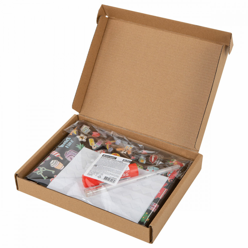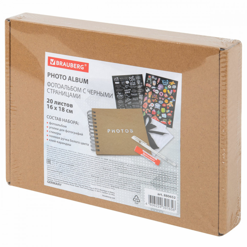 Brauberg ФотоальбомВ данный момент этот товар отсутствует в продаже. Возможно, у нас найдется аналогичный или похожий товар здесь. Фотоальбом BRAUBERG станет настоящей копилкой памятных дат и событий, а также отличным подарком. Фотоальбом на пружине состоит из 20 бумажных листов чёрного цвета плотностью 250 г/м2, размером 15.5 × 16.5 см, без карманов. Это позволяет размещать фотографии на одной странице, а также оставлять рядом с фото надписи от руки, рисунки, наклеивать креативные стикеры. Обложка фотоальбома выполнена из крафт-картона плотностью 550 г/м2 с фольгированной серебристой надписью «PHOTOS». Обложка декорирована черными ленточками, которые можно завязать в бант. Оформление такого фотоальбома — это безудержный полёт фантазии и креатива! Располагайте фотографии как хочется, украшайте альбом стикерами, оставляйте надписи, комментарии и рисунки — создайте памятную книгу своими руками! Фотоальбом — это путешествие в прошлое, книга памяти, рассказывающая обо всех значимых и важных событиях. Заглянув в альбом, можно снова пережить прекрасные моменты. Окунитесь в приятные воспоминания вместе с фотоальбомом BRAUBERG! |