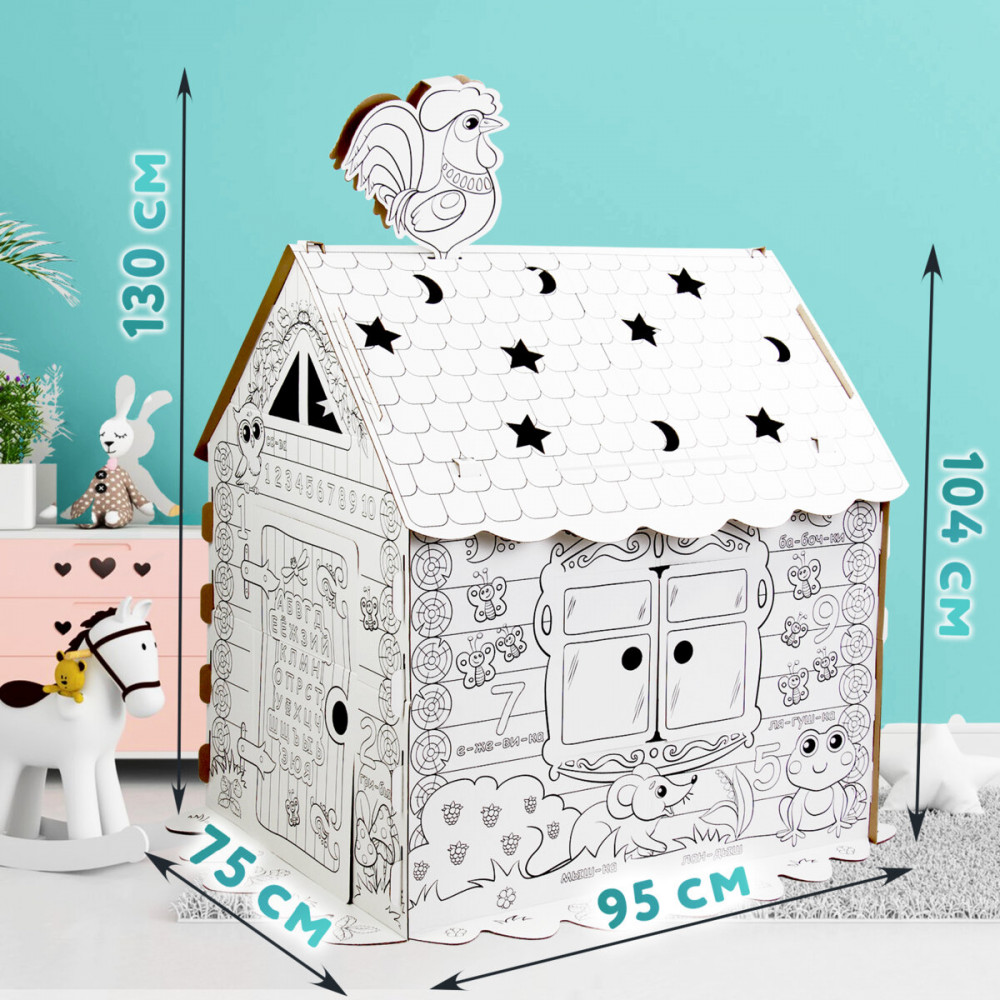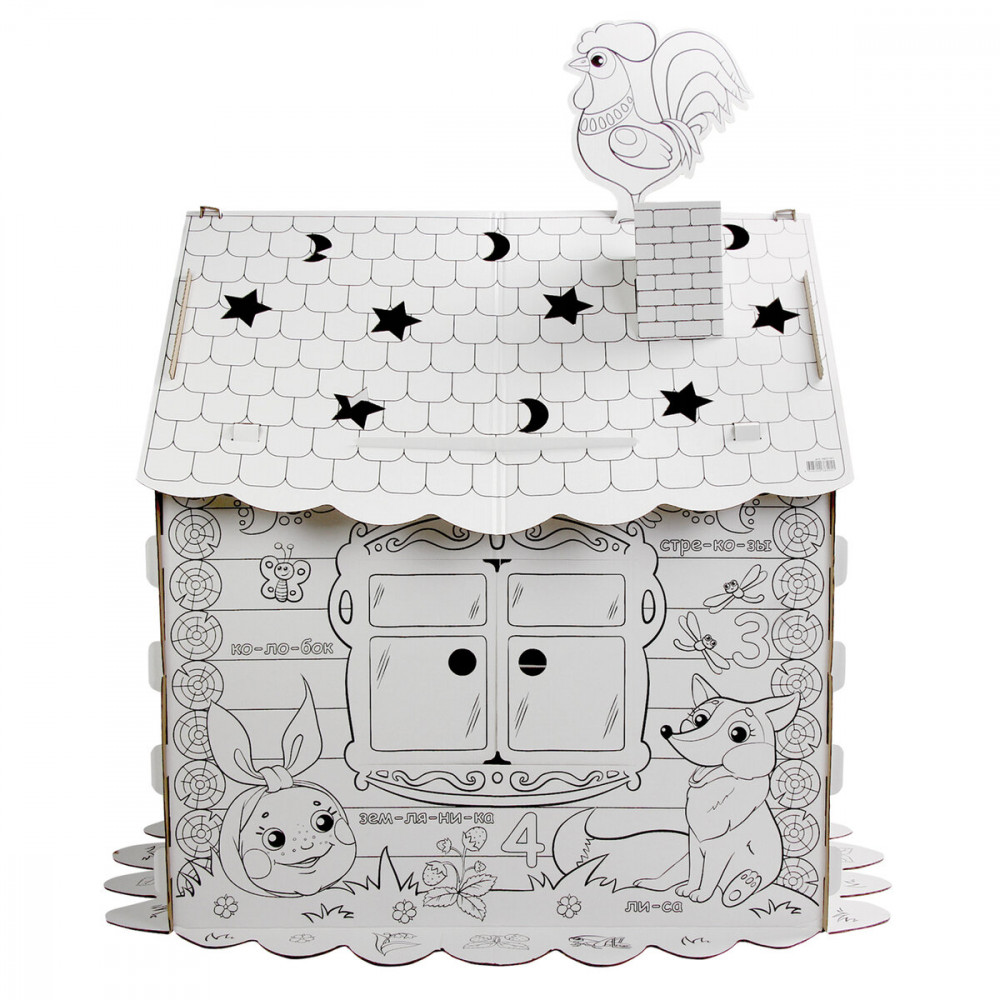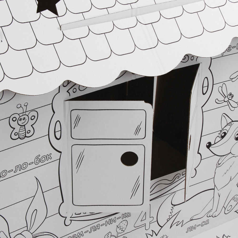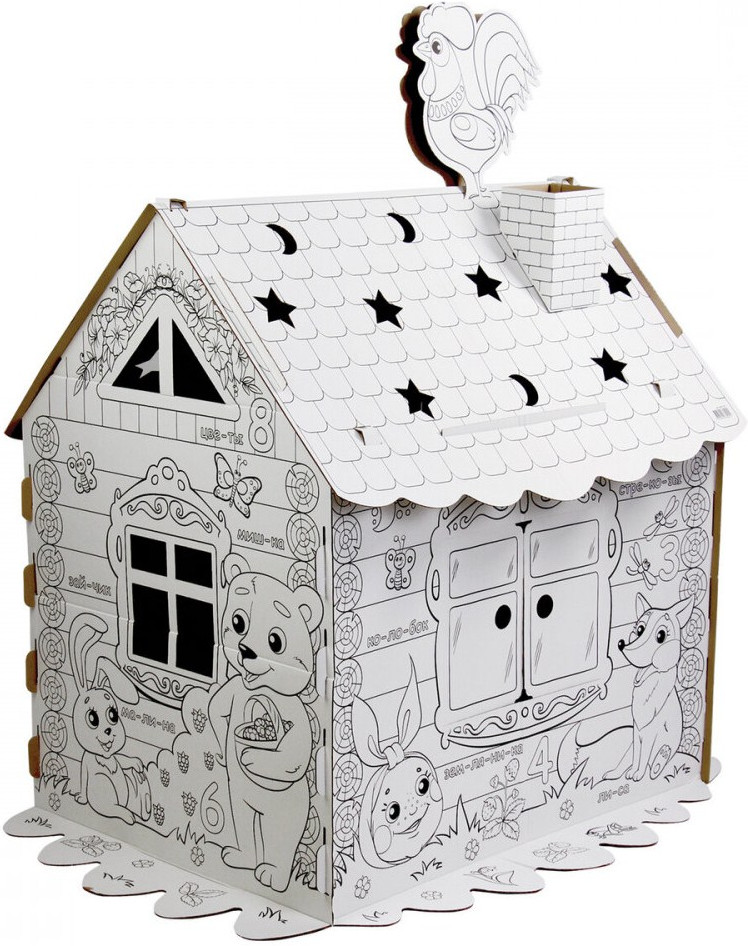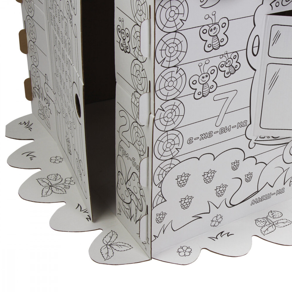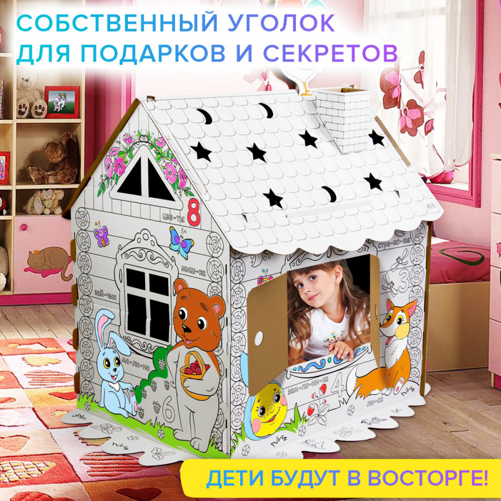 Домик-раскраска игровой развивающий «Сказочный» — большой домик для юных художников! В процессе раскрашивания ребенок познакомится с русским алфавитом, счетом, а также улучшит навыки рисования. Домик-раскраска изготовлен из 100% безопасного, экологически чистого материала — гофрированного картона.