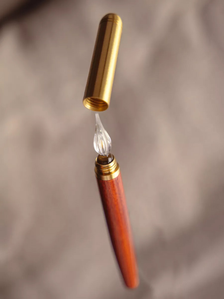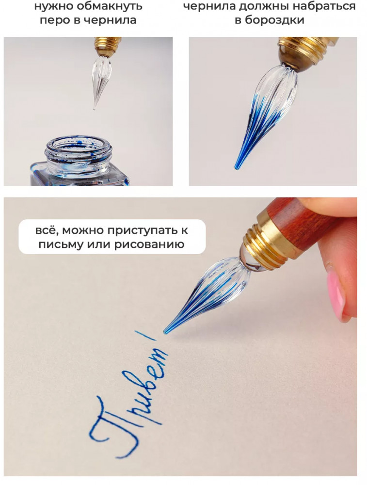 💳 Оплатить за товар можно при получении 🇰🇿 Есть бесплатная доставка по Казахстану от 1 дня 🎁 Копите бонусы с каждой покупки Стеклянная ручка для каллиграфии Малевичъ — прекрасный подарок для начинающих и опытных художников. Стеклянное перо, изготовленное в форме красивого веретена, сужается к пишущей точке. Чернила набираются в специальные бороздки, расположенные снаружи пера. Бороздки удерживают чернила, позволяя им аккуратно скатываться вниз по наклону, что обеспечивает качественный результат письма. Корпус ручки изготовлен из дерева, колпачок и фурнитура из латуни. Благодаря деревянному корпусу и наличию колпачка, эту стеклянную ручку можно носить с собой. |
