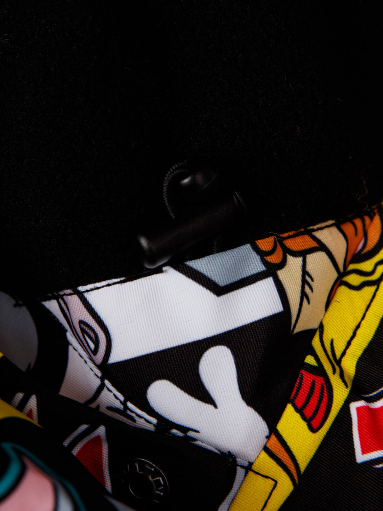 Куртка: подкладка — флис, утеплитель 250 г/м, боковые карманы на молнии. Съемный капюшон с утяжкой по ширине резинкой со стопперами. Защита подбородка при застегивании молнии. Внешняя ветрозащитная планка на липучках. Эргономичные рукава. На рукаве карман для скипаса, регулировка ширины рукава липучкой. Внутренние лямки для снятия в помещении. Снегозащитная юбка с резинкой Snow stopper.