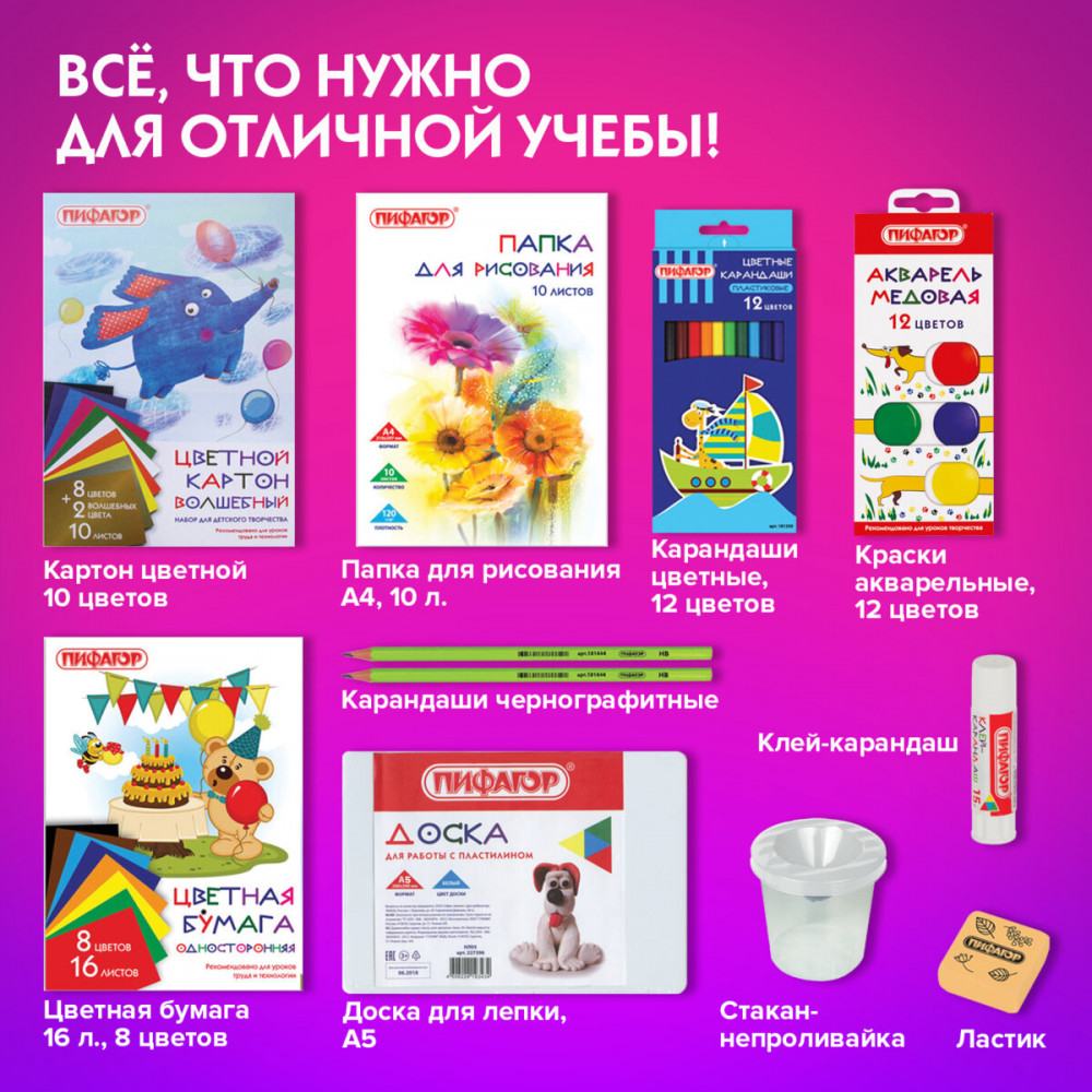 Пифагор — это демократичная и динамично развивающаяся марка товаров для учёбы и детского творчества. Марка Пифагор сочетает в себе яркий дизайн и легко запоминающееся, знакомое каждому с детства имя. |