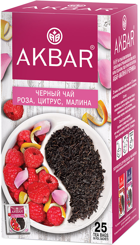 Akbar Чай черный пакетированный с розой, цитрусом и малиной