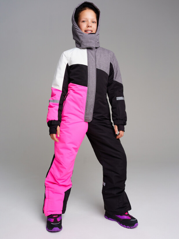 Зимний комбинезон для девочки подростка. Утепленный горнолыжный комбинезон — идеальный выбор для активного отдыха на свежем воздухе в зимний период. Инновационный утеплитель и флисовая подкладка сохраняют тепло в морозную погоду. Мембранный материал делает этот яркий и модный комбинезон непромокаемым: мембрана не пропускает влагу снаружи, но выводит её изнутри, что крайне важно во время подвижных игр и занятий спортом. Легкий, теплый и удобный, комбинезон идеально подходит для спорта, лыж, сноуборда и игр на свежем воздухе в холодный период года: зима, поздняя осень и ранняя весна.