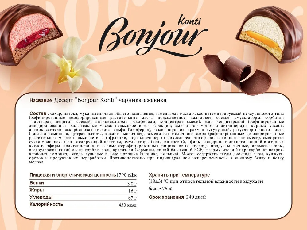 Konti Десерт со вкусом черники и ежевики «Bonjour»