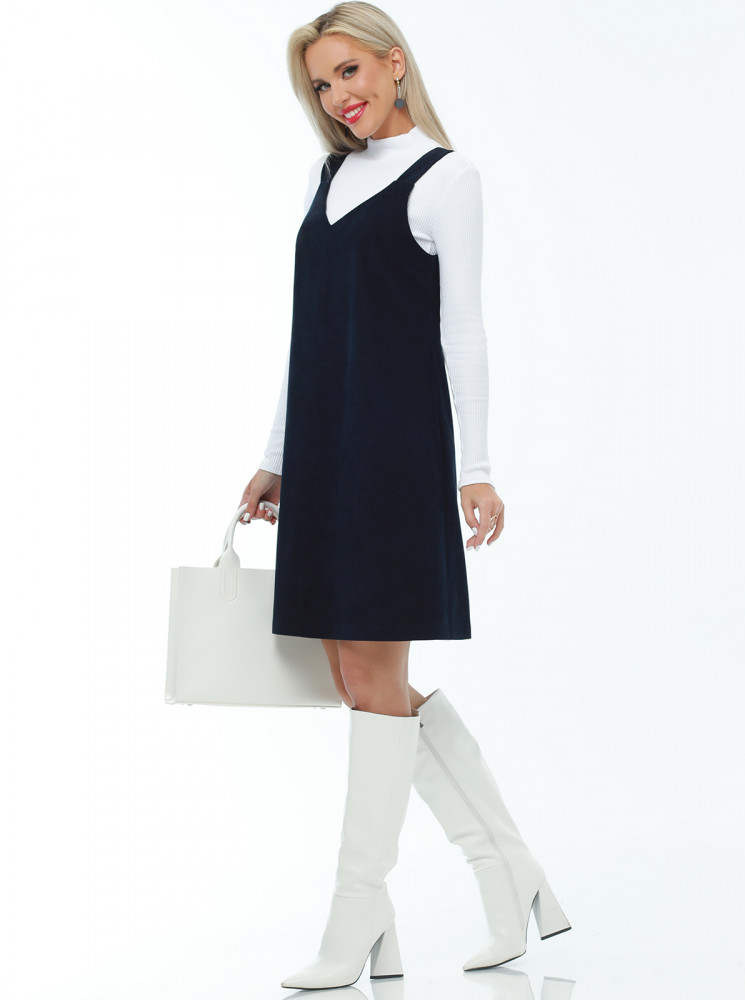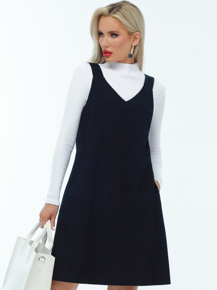 Элегантный вельветовый сарафан — стильная модель, которая разнообразит гардероб. А-силуэт подчеркивает фигуру, плавно расширяется книзу и скрывает проблемные зоны. V-образный вырез и широкие бретели смотрятся оригинально. Сарафан выполнен из плотного, приятного на ощупь вельвета, который хорошо держит форму и согревает в холодный сезон. Сарафан можно носить поверх базовых или акцентных блузок, свитеров, водолазок и футболок.