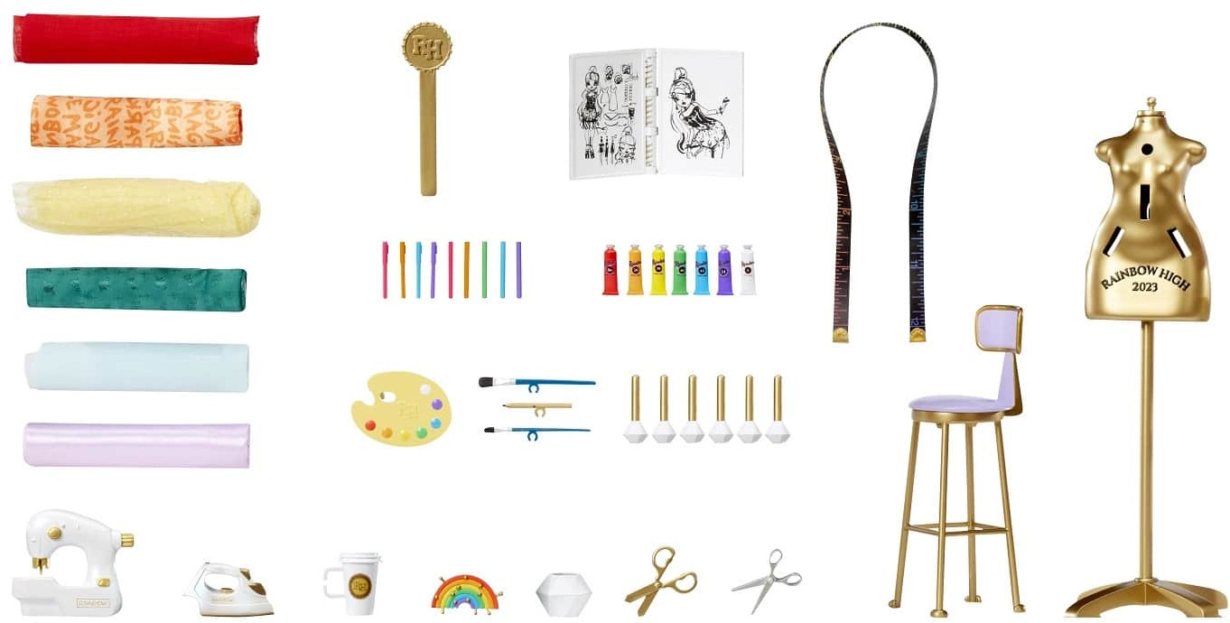 Rainbow High Набор игровой «Ателье с куклой Скайлер Мэдисон»В данный момент этот товар отсутствует в продаже. Возможно, у нас найдется аналогичный или похожий товар здесь. Представляем Скайлер Мэдисон в культовом игровом наборе Ателье Dream & Design. С помощью набора модельера можно почувствовать себя героиней Рейнбоу Хай в проекте Фэшн Шоу и создать более 300 вариантов дизайна одежды для новых показов мод. В игровом наборе эксклюзивная кукла Скайлер Брэдшоу с подвижными ручками и ножками (11 точек артикуляции), длинными густым прошитыми волосами, модным нарядом и аксессуарами. |