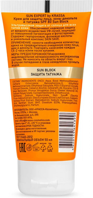 Krassa Крем для защиты лица, зоны декольте и татуажа «Sun Expert» SPF 80
