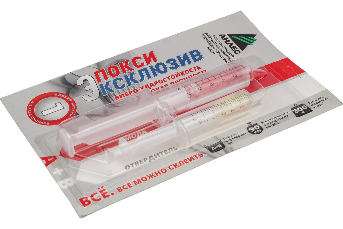 Клей эпоксидный «Анлес Эксклюзив» — надежный помощник в ремонте и конструировании. Обладает высокой вибро- и ударопрочностью, а также прекрасно склеивает металл, керамику, стекло и другие материалы. Объем 13 мл.