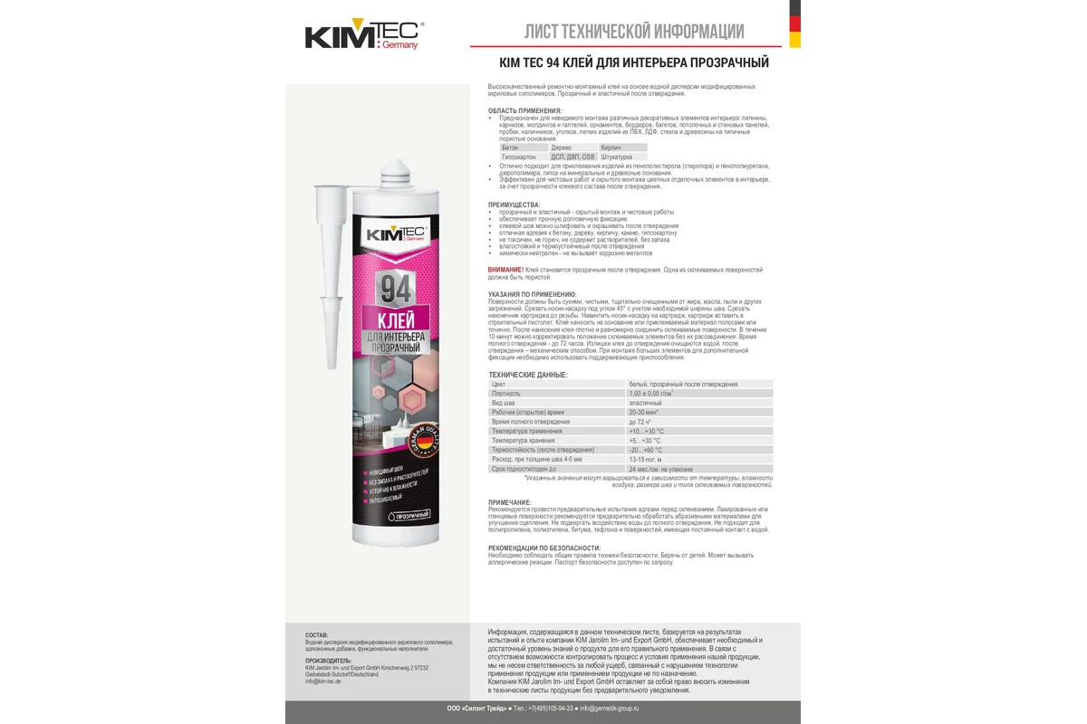 Kim Tec Клей для интерьера, прозрачныйВ данный момент этот товар отсутствует в продаже. Возможно, у нас найдется аналогичный или похожий товар здесь. Клей жидкие гвозди Kim Tec 94 для интерьера, прозрачный 280 мл 11607934 — ремонтно-монтажный клей на основе водной дисперсии акриловых сополимеров. Прозрачный и эластичный после отверждения. Предназначен для невидимого и долговечного склеивания элементов на поверхности из бетона, дерева, кирпича, гипсокартона, ДСП, ДВП, ОСБ, штукатурки: лепнины, карнизов, молдингов, галтелей, орнаментов, бордюров, багетов, потолочных и стеновых панелей, наличников и уголков, легких изделий из ПФХ, ЛДФ, стекла и древесины. |