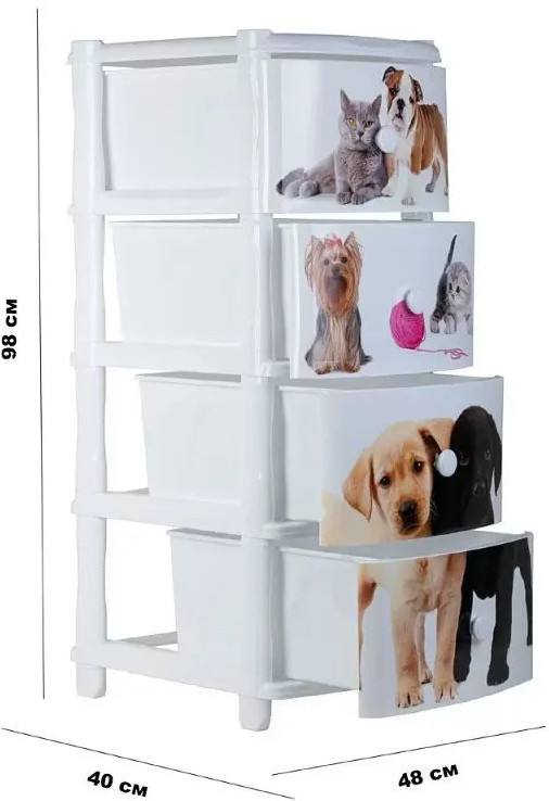 Elfplast Комод пластиковый «Питомцы»В данный момент этот товар отсутствует в продаже. Возможно, у нас найдется аналогичный или похожий товар здесь. Комод № 13 «Питомцы» — практичный и функциональный предмет мебели, который прекрасно дополнит любую детскую комнату! За счёт компактных размеров, представленная модель не загромождает пространство и будет уместно смотреться даже в небольшой детской комнате. Благодаря оригинальному дизайну передней панели, комод гармонично впишется в любой современный интерьер и поможет расставить цветовые акценты. Комод выполнен из прочного пластика, который абсолютно безопасен для здоровья, т.к. не содержит бисфенол А. Модель состоит из четырёх ящиков, которые плавно и совершенно бесшумно закрываются. Красочный декор, нанесённый с помощью IML-технологии, не стирается и не повреждается в процессе использования. Он устойчиво стоит на любой поверхности, будь то паркет, ламинат, плитка или ковёр. Он не требователен в уходе, легко содержать в чистоте — достаточно протереть влажной салфеткой. Конструкция комода проста в сборке, и имеет минимальный вес. |