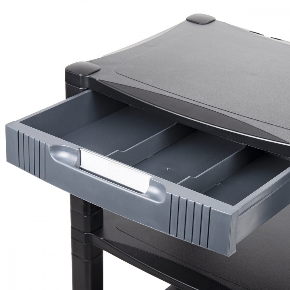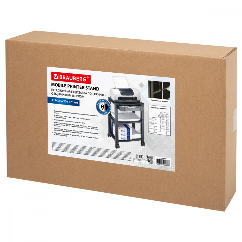 💳 Оплатить за товар можно при получении 🇰🇿 Есть бесплатная доставка по Казахстану от 1 дня 🎁 Копите бонусы с каждой покупки Практичная и надёжная подставка Brauberg из прочного пластика предназначена для размещения принтера. Снабжена полками для хранения бумаги и выдвижным ящиком для канцелярских принадлежностей. Модульная конструкция позволяет регулировать высоту подставки и устанавливать 2 или 3 полки. Благодаря роликам подставку можно легко перемещать в случае необходимости, а наличие блокировок позволит надежно зафиксировать подставку на месте. Подставка для оргтехники Brauberg обеспечивает максимальное удобство работы с принтером. Приобретайте наши товары для офиса и убедитесь в этом сами! |