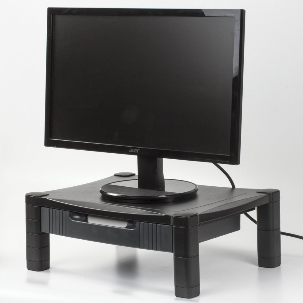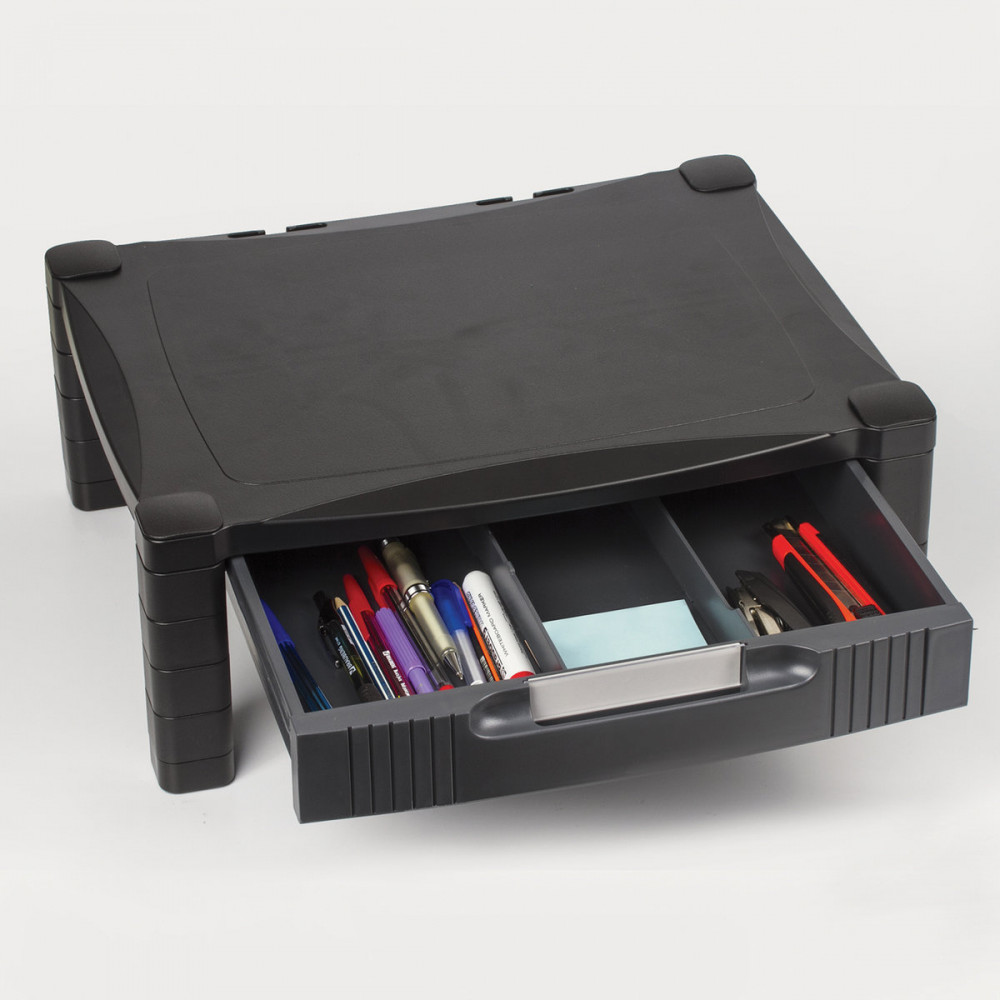 💳 Оплатить за товар можно при получении 🇰🇿 Есть бесплатная доставка по Казахстану от 1 дня 🎁 Копите бонусы с каждой покупки Настольная подставка Brauberg предназначена для размещения принтера, ноутбука, монитора. Модульная конструкция подставки позволяет регулировать ее высоту. Размер подставки: 43 × 34 × 16 см. По центу расположен выдвижной ящик для канцелярских принадлежностей. Специальные фиксаторы не дадут проводам от монитора спутываться. |