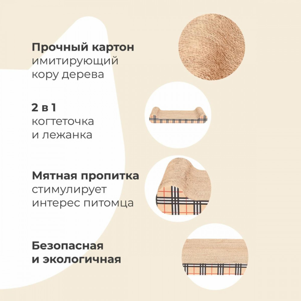 Картонная когтеточка с мятной пропиткой — это эргономичное решение для вас и вашего питомца. Стильный и лаконичный дизайн когтеточки прекрасно впишется в любой интерьер, а прочный картон, из которого она сделана, отлично подойдет как для стачивания когтей, так и для комфортного отдыха вашего любимца. 100% экологичный материал. При доставке когтеточка будет упакована в термопленку.