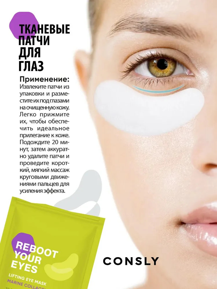 Consly Набор масок-патчей для кожи вокруг глаз с лифтинг-эффектом с коллагеном и морскими водорослями