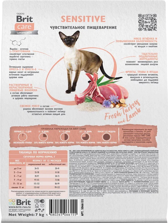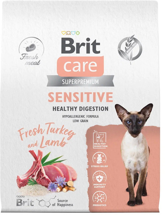 Brit Корм сухой для кошек с индейкой и ягненком «Care Cat Sensitive Healthy Digestion»