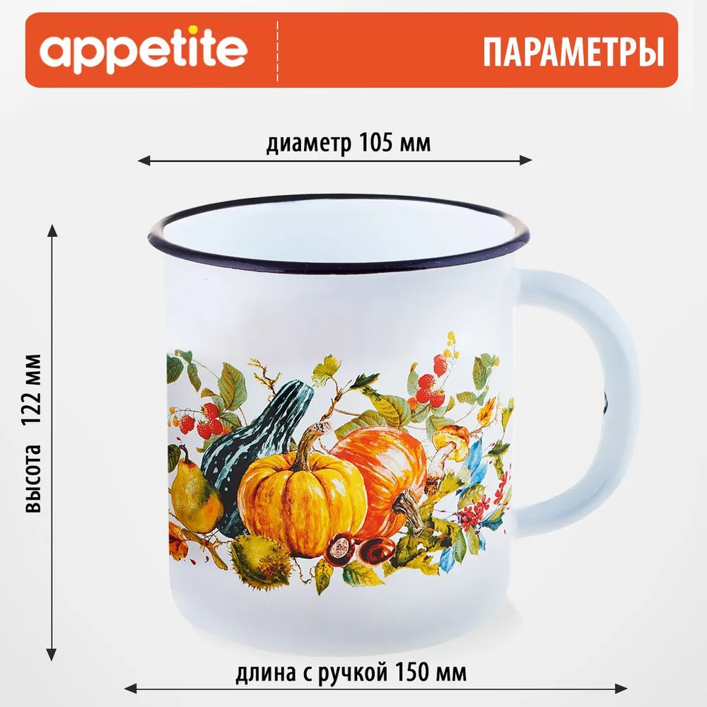 Appetite Кружка эмалированная «Осень»-25% +116 красивый рисунок хороший размер удобная ручка скол эмали