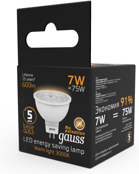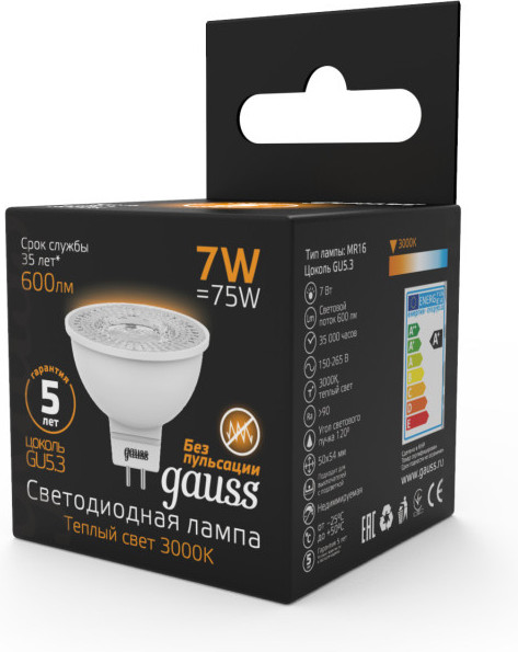 💳 Оплатить за товар можно при получении 🇰🇿 Есть бесплатная доставка по Казахстану от 1 дня 🎁 Копите бонусы с каждой покупки Серия: MR16 Светодиодная лампа Gauss - самый безопасный для здоровья и окружающей среды источник света. Она не пульсирует, мгновенно включается, не содержит ртути, и имеет больший срок службы, чем лампы накаливания. |