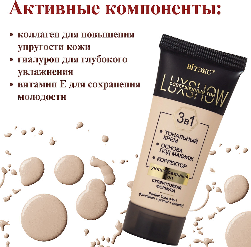 Вiтэкс Тональный крем для лица 3 в 1 «Совершенный тон»