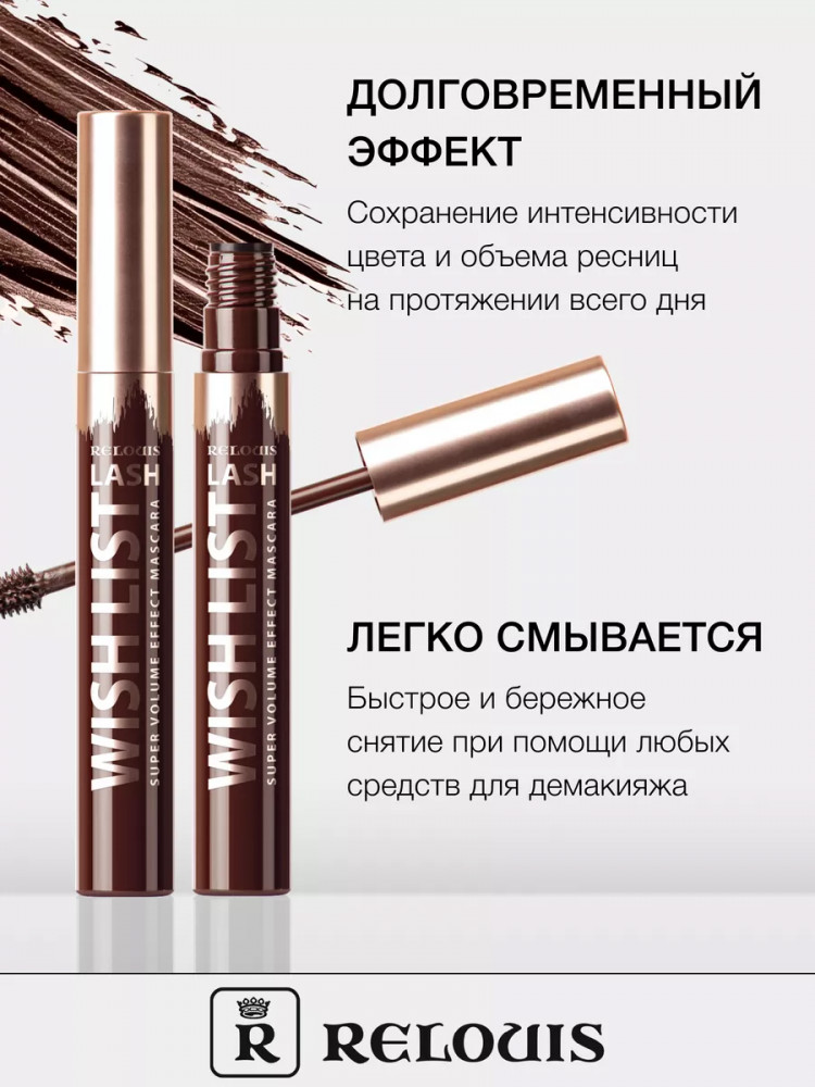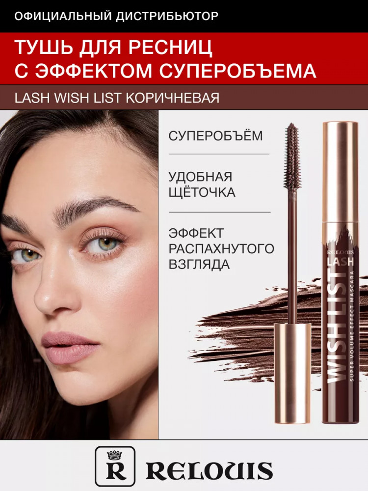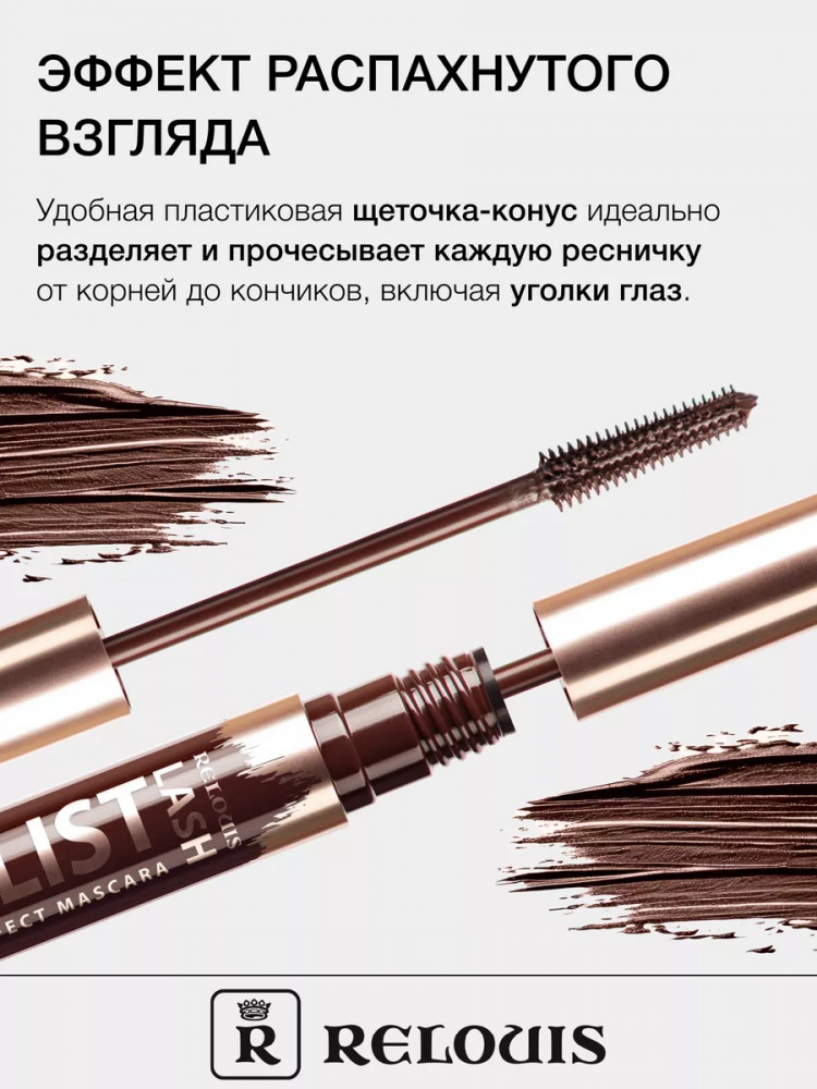 RELOUIS Тушь для ресниц с эффектом суперобъема «Lash Wish List», оттенок Коричневый