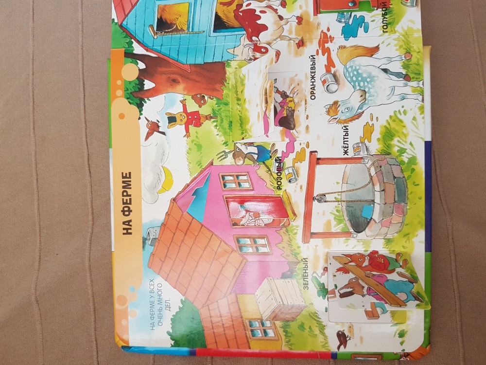 Книга исключительная! Толстые листы, множество окошек на каждом развороте, яркие картинки! Книга толстая и большая. Недёшево, конечно, но дети в восторге!