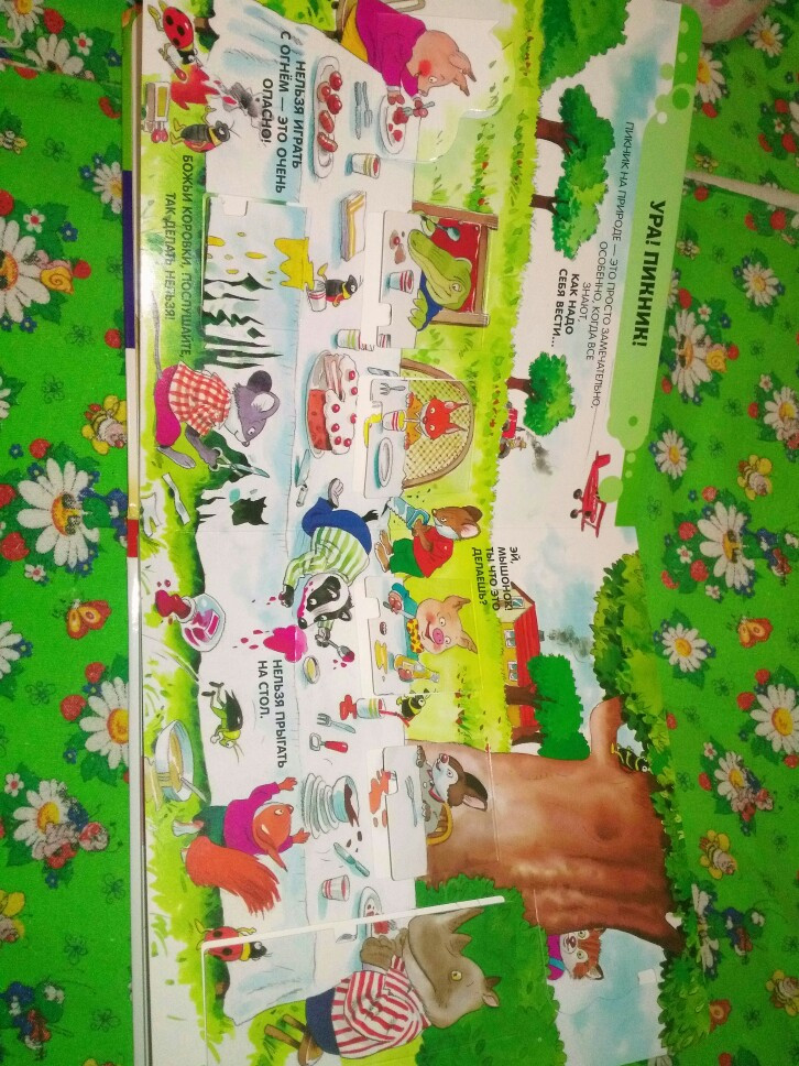 Ну ооочень яркая и интересная книжка. Надеюсь, когда малыш подрастёт, ему понравится. Можно будет узнать цвета, величины, времена года и др. Качество книги на высоте- очень плотная.