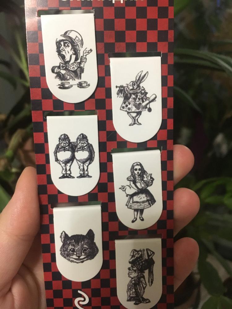 Заказываю на Флип.кз не первый год. Канцелярию в том числе. Дочь любит сказку Алиса в стране чудес. Вот выбрала ей закладки- магнитики.