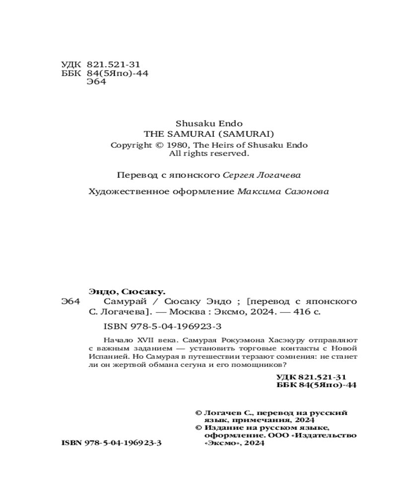 Серия: Loft. Сила духа Сюсаку Эндо Исторический роман признанного классика японской литературы Сюсаку Эндо рассказывает о Японии XVII века, о временах самураев и междоусобиц. Самурая Ракуэмона Хасэкуру отправляют вместе с соотечественниками в Новую Испанию (Мексику) для установления торговых отношений. Все ли переживут плавание? Как христиане отнесутся к японцам? |
