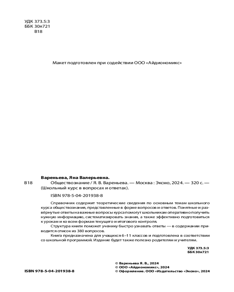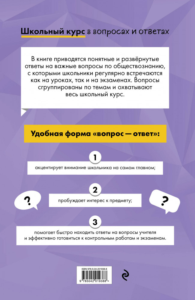 💳 Оплатить за товар можно при получении 🇰🇿 Есть бесплатная доставка по Казахстану от 1 дня 🎁 Копите бонусы с каждой покупки Серия: Школьный курс в вопросах и ответах Все темы школьного курса обществознания, представленные в форме «вопрос — ответ», делают настоящий справочник отличной альтернативой скучным учебным пособиям. Ёмкие ответы на 380 самых важных вопросов предмета в доступной форме расскажут необходимое. Структура книги не даст устать от чтения, а интонация диалога (вопрос — ответ) снимет напряжённость в ходе обучения. Это пособие поможет акцентировать внимание на самом главном, быстро находить ответы на вопросы учителя, успешно выполнять домашние задания, эффективно готовиться к контрольным работам и экзаменам. Издание станет настоящей палочкой-выручалочкой для учеников 6–11 классов, а также принесёт пользу учителям, репетиторам и всем, кто интересуется обществознанием! |