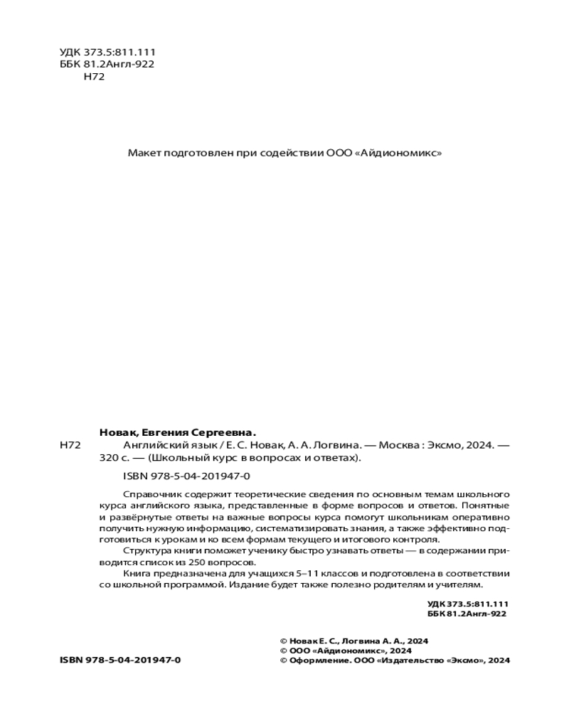 💳 Оплатить за товар можно при получении 🇰🇿 Есть бесплатная доставка по Казахстану от 1 дня 🎁 Копите бонусы с каждой покупки Серия: Школьный курс в вопросах и ответах Все темы школьного курса английского языка, представленные в форме «вопрос — ответ», делают настоящий справочник отличной альтернативой скучным учебным пособиям. Ёмкие ответы на 250 самых важных вопросов предмета в доступной форме расскажут необходимое. Структура книги не даст устать от чтения, а интонация диалога (вопрос — ответ) снимет напряжённость в ходе обучения. Это пособие поможет акцентировать внимание на самом главном, быстро находить ответы на вопросы учителя, успешно выполнять домашние задания, эффективно готовиться к контрольным работам и экзаменам. Издание станет настоящей палочкой-выручалочкой для учеников 5–11 классов, а также принесёт пользу учителям, репетиторам и всем, кто интересуется английским языком! |