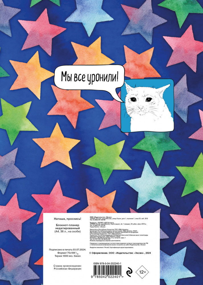 Блокнот-планер «Наташа, проснись!»В данный момент этот товар отсутствует в продаже. Возможно, у нас найдется аналогичный или похожий товар здесь. Серия: Делай! Планеры для записи идей, списков и встреч Переключаясь между множеством задач, мы чувствуем, что у нас нет ни секунды на отдых. А потом думаем, что сегодня был очередной неудачный день: мы были ужасно заняты и ничего не успели сделать. Что мешает просто сесть и сфокусироваться на чём-то одном? Мы постоянно отвлекаемся от главной цели, что само по себе плохо, а теперь появилось ещё и доказательство того, что многозадачность плохо влияет на наш мозг. Кажется, пора попробовать работу в другом режиме — режиме осознанности и монозадачности! Планируйте задачи, события, по часам, дням, неделям, для этого в планере есть удобная сетка. Популярный мем на обложке точно улушит процесс планирования! |