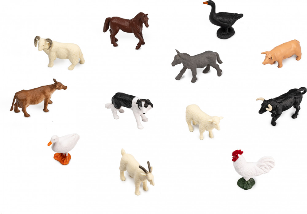 В наборе 12 фигурок различных животных, обитающих на ферме. Фигурки изготовлены из качественного пластика. Они имеют четкую детализацию и очень приятные на ощупь.