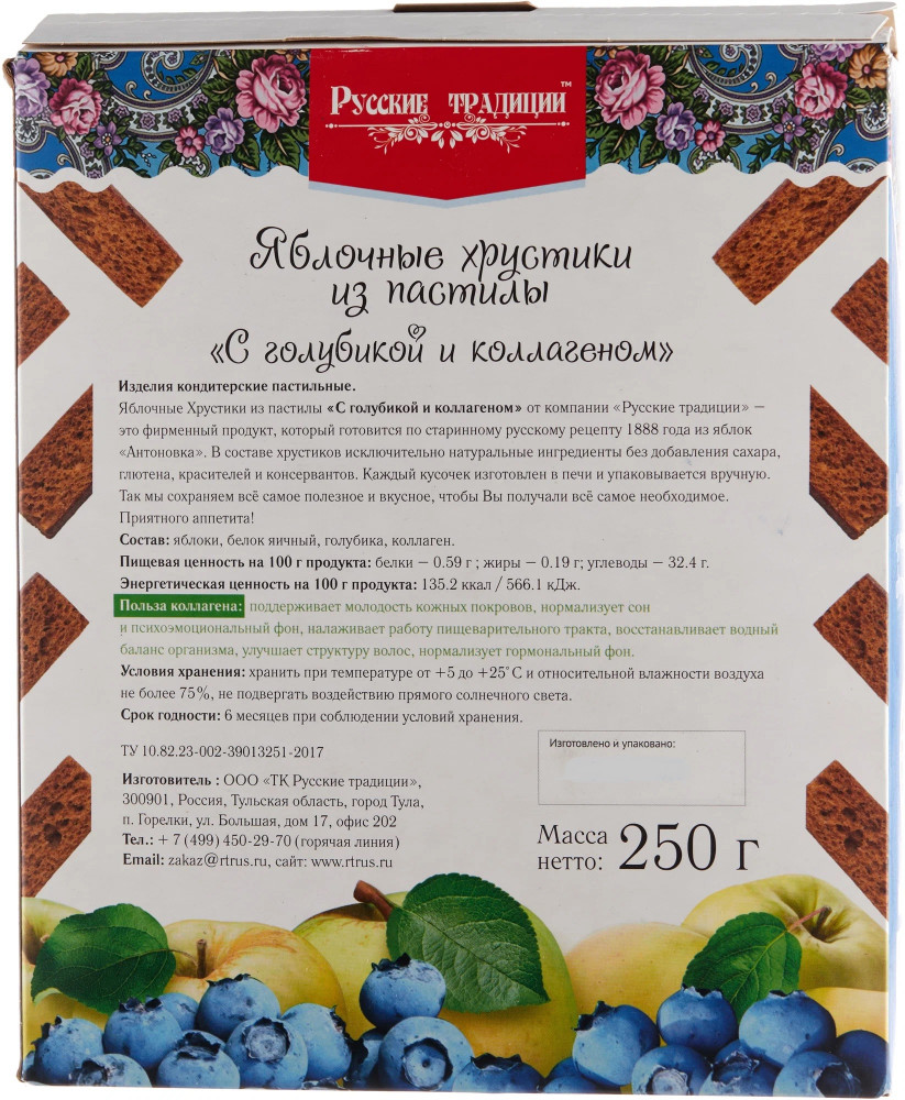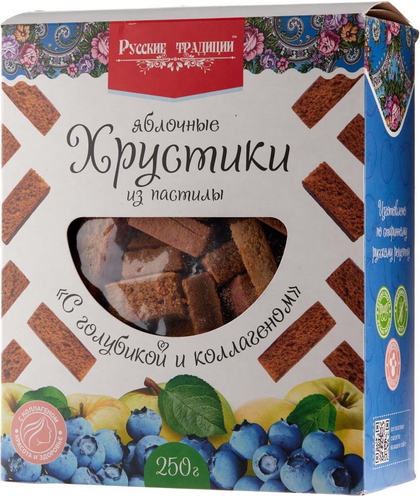 Русские традиции Хрустики яблочные из пастилы «С голубикой и коллагеном»