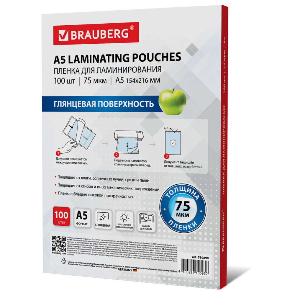 💳 Оплатить за товар можно при получении 🇰🇿 Есть бесплатная доставка по Казахстану от 1 дня 🎁 Копите бонусы с каждой покупки Пленка для ламинирования Brauberg надежно защитит документы от влаги, пыли, воздействия УФ-лучей и других внешних факторов. |