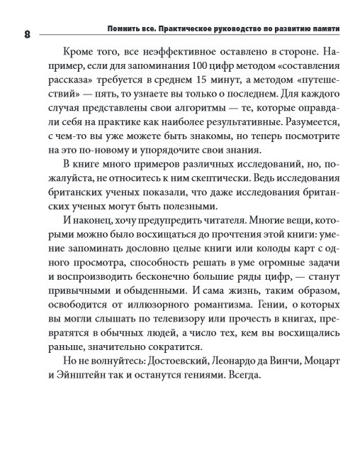 Помнить всеВ данный момент этот товар отсутствует в продаже. Возможно, у нас найдется аналогичный или похожий товар здесь. Эта книга — сборник конкретных приемов и техник по развитию памяти, представленных автором, который помнит число «пи» до 22 528 знаков после запятой и собирается зафиксировать свое достижение в Книге рекордов Гиннесса. |
