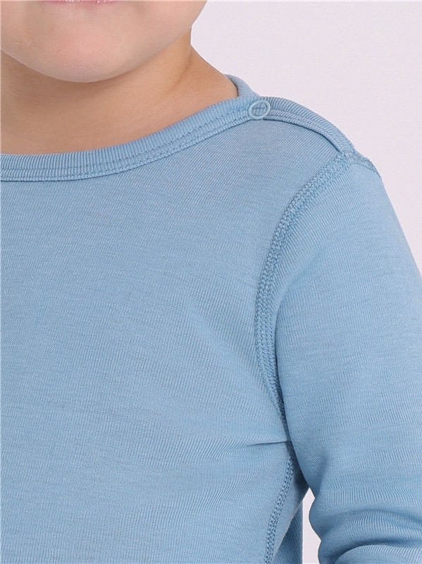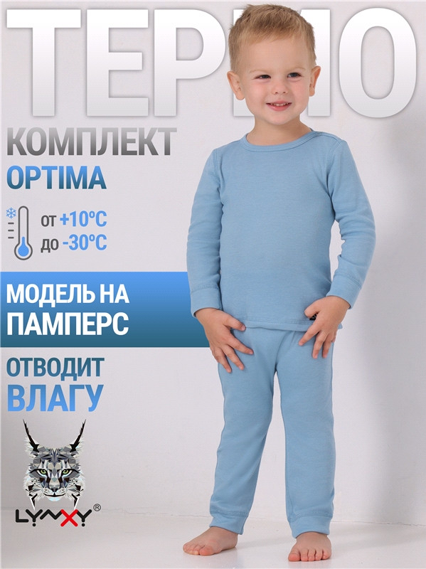 Термокомплект спортивного назначения состоит из лонгслива и кальсонов, подходит для средней и высокой физической активности в холодное время года до -30 градусов. Комплект выполнен из мягкого термополотна с микроначесом с изнаночной стороны, которое сохраняет тепло и выводит влагу, позволяя коже оставаться сухой. Застежка на кнопки по плечикам. Имеет специальный крой для удобства ношения с подгузником. Плоские швы и эргономические лекала обеспечивают комфортное прилегание изделия.