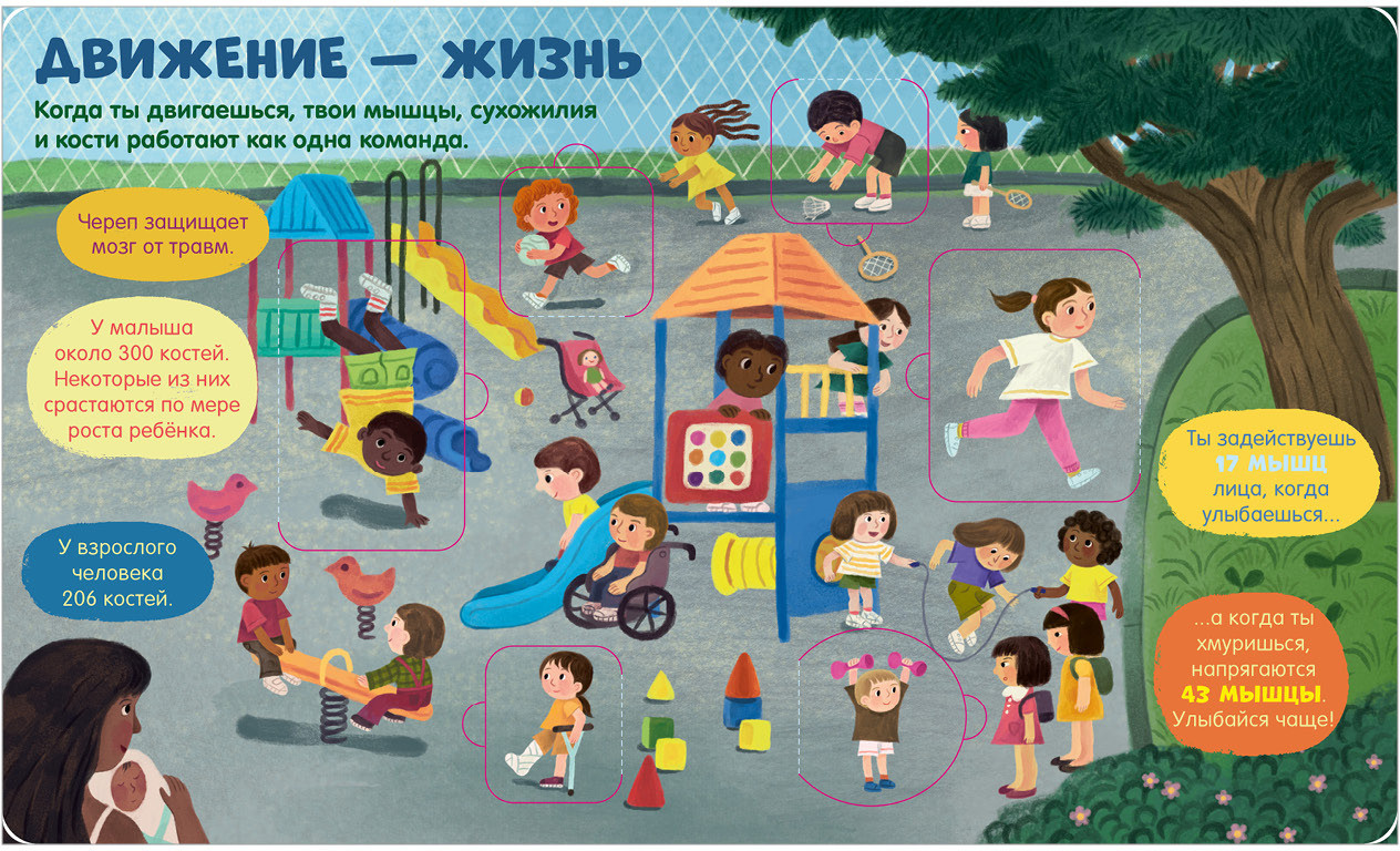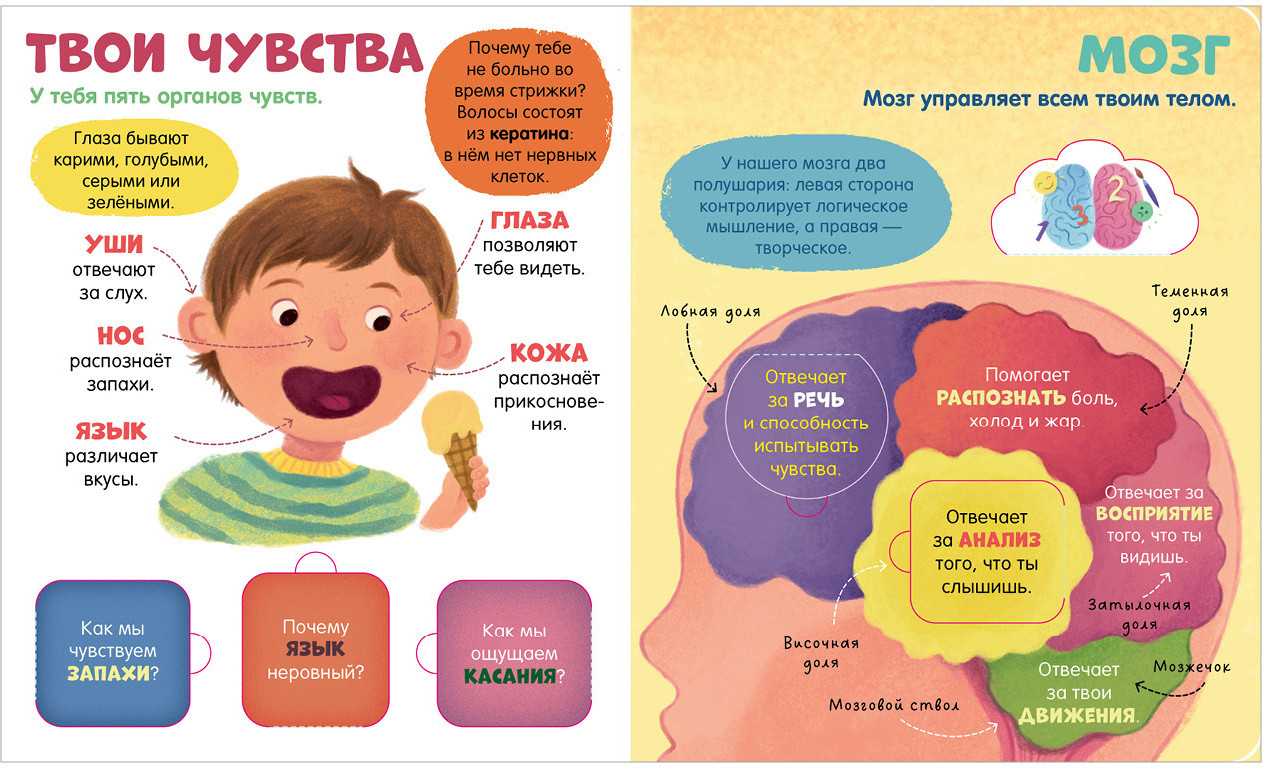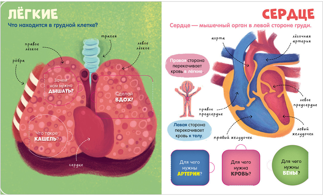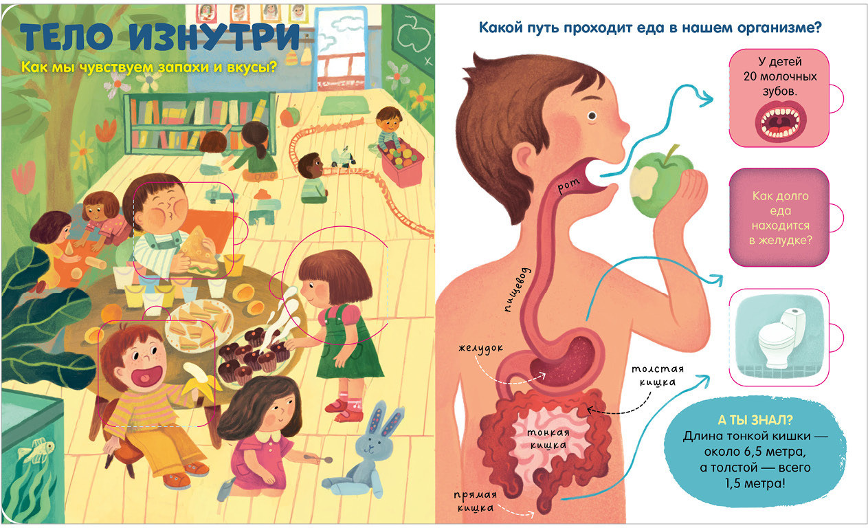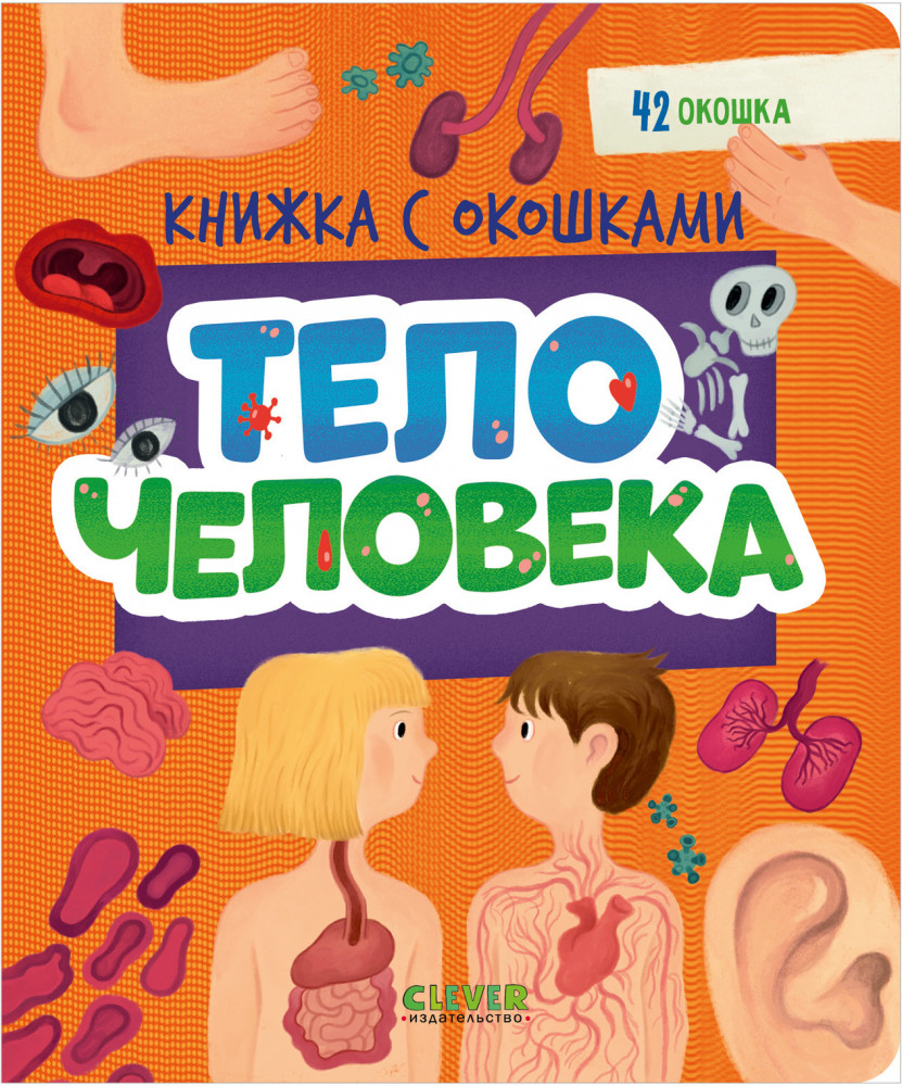 42 окошка в книжке «Тело человека» раскроют тайны: зачем голове волосы? Почему сердце бьется? Откуда у нас пупок? Почему язык неровный?
