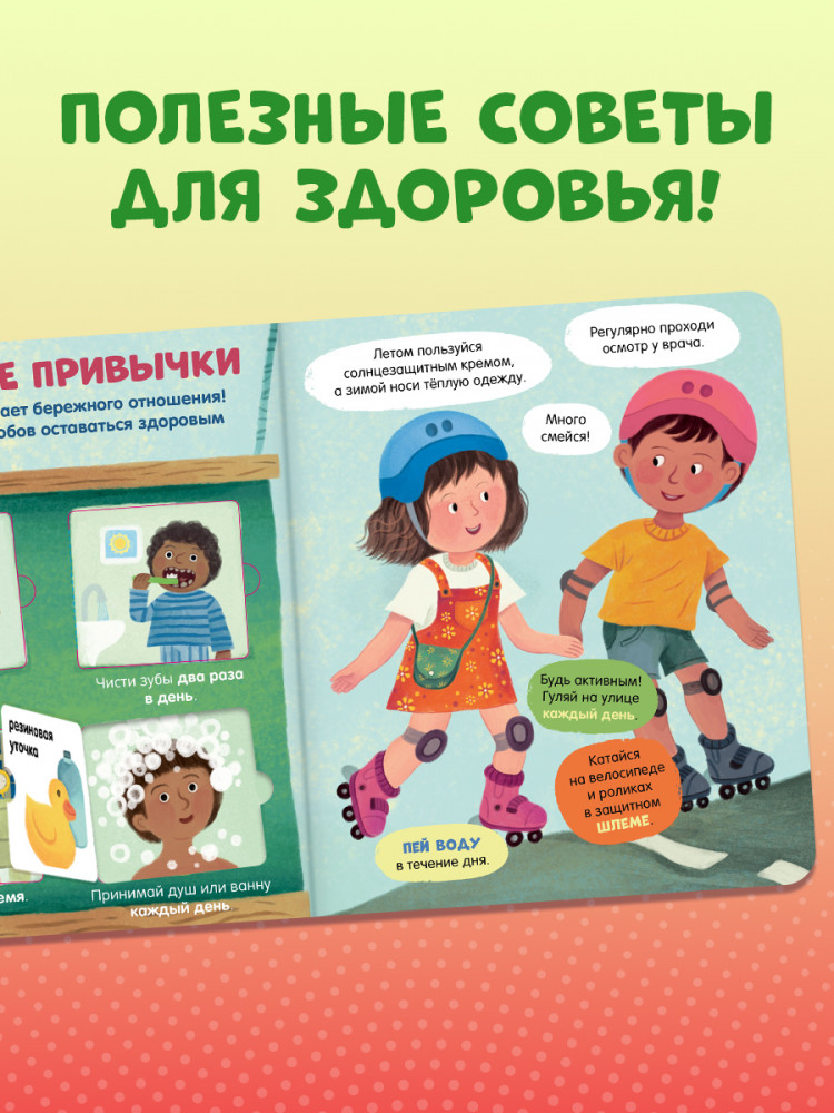 Можно рассматривать картинки, открывать окошки, изучать интересные факты и узнавать все больше и больше о нашем удивительном теле! Книжка сделана из плотного долговечного картона со скругленными уголками и будет радовать ребенка очень долго. |