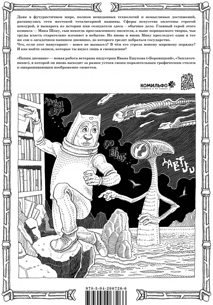 💳 Оплатить за товар можно при получении 🇰🇿 Есть бесплатная доставка по Казахстану от 1 дня 🎁 Копите бонусы с каждой покупки Серия: Комильфо. Своя волна Даже в футуристичном мире, полном невиданных технологий и немыслимых достижений, раскинулись сети жестокой тоталитарной машины. Сферы искусства оплетены строгой цензурой, и вымарать из истории имя созидателя здесь — обычное дело. Главный герой этого комикса — Мика Шоку, сын некогда прославленного писателя, а ныне порицаемого творца, чьи труды власть старательно изгоняет в небытие. Но вновь и вновь Мику преследует один и тот же сон о загадочном папином дневнике, до которого грезит добраться государство. Что, если этот манускрипт — вовсе не вымысел? В чём его угроза новому мировому порядку? И как найти записи, которые ты видел лишь в сновидении? |