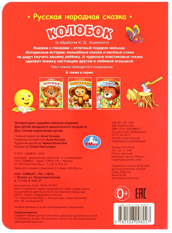 УМка Книжка с глазками «Колобок»Константин Дмитриевич Ушинский -40% +8