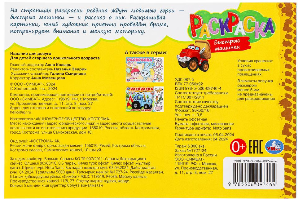 УМка Раскраска горизонтальная «Быстрые машинки»-30% +6