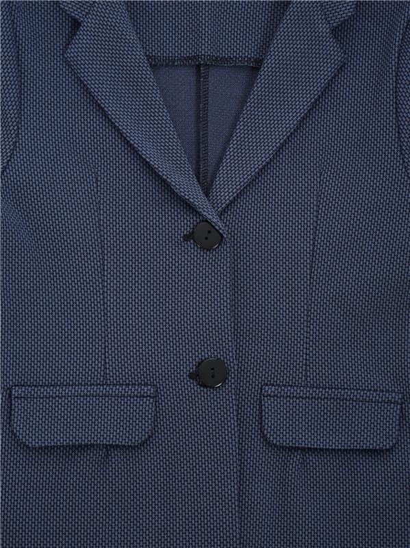 Жакет для девочки из плотного полотна с рельефным рисунком, выполненным с применением жаккардового плетения. Изделие полуприлегающего силуэта с длинными рукавами, с застежкой на пуговицы и шлицей по спинке. Линия талии подчеркнута вытачками. Классический отложной воротник. Отличный вариант для школы!
