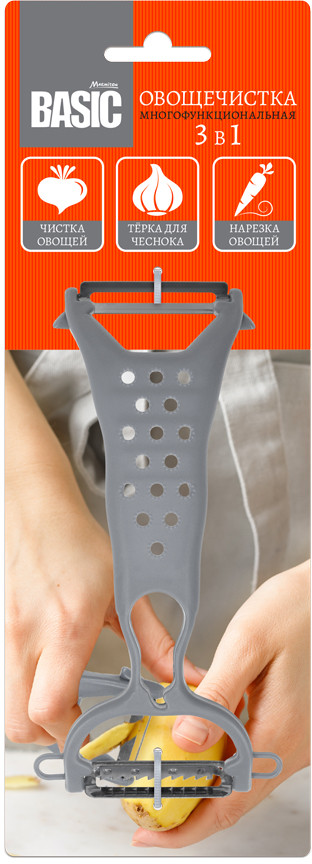 Marmiton Овощечистка многофункциональнаянадежно хрупкость неудобство развал низкое качество пластик дешевый В данный момент этот товар отсутствует в продаже. Возможно, у нас найдется аналогичный или похожий товар здесь. Серия: Basic Овощечистка является незаменимым прибором на каждой кухне. Благодаря плавающему ножу специальной формы, овощечистка снимает кожуру с овощей и фруктов тончайшим слоем, экономя овощи и фрукты и сохраняя максимум витаминов в плодах. Многофункциональная овощечистка 3 в 1 применяется как терка для чеснока, а также подходит для чистки и нарезки овощей. |