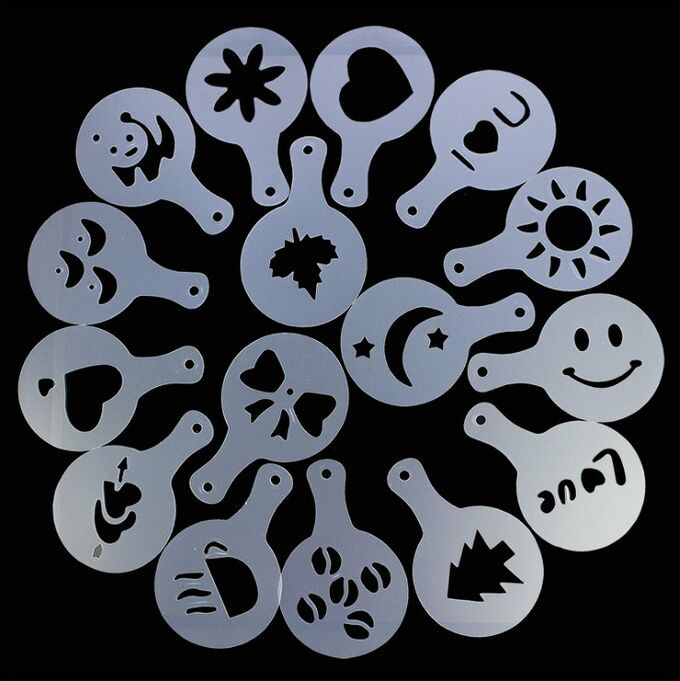 Набор трафаретов для украшения напитков многофункциональный. Позволит быстро и легко украсить приготовленный кофе, капучино, какао или латте. Также кулинарные трафареты могут быть использованы для украшения выпечки, торта, печенья, кекса, пряников, панкейков и мороженого и даже тарелок. Трафареты для творчества могут применяться в качестве украшения стекол и зеркал, для декора по дереву, для декорирования ваз и тарелок, и даже для бодиарта. Создавайте уникальные образы и мгновенно наносите рисунки на кожу.