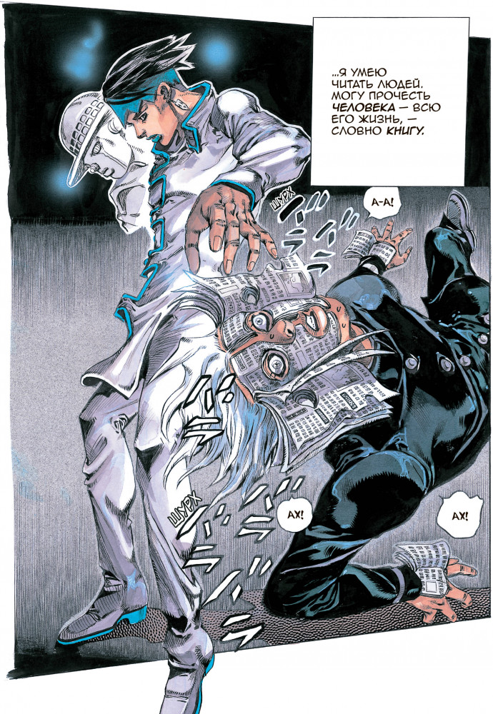 Меня зовут Джорно Джованна. Мне 15 лет. Мой дом находится в южной части Италии, где расположены все виллы. Я не женат. Я работаю таксистом и прихожу домой не позднее 8 вечера. Я не курю, но иногда выпиваю. Я ложусь спать в 11 вечера, и убеждаюсь, что я получаю ровно восемь часов сна, несмотря ни на что. Выпив стакан теплого молока и потянувшись минут двадцать перед сном, я обычно без проблем сплю до утра. Словно ребёнок я просыпаюсь утром без всякой усталости и стресса. На моём последнем осмотре мне сказали, что у меня нет никаких проблем со здоровьем. Я пытаюсь донести, что я обычный человек, который хочет жить спокойной жизнью. Я забочусь о том, чтобы не утруждать себя какими-либо врагами – победами и поражениями, которые могли бы потревожить мой сон. Вот как я отношусь к обществу, и я знаю, что это приносит мне счастье. Хотя, если бы мне пришлось сражаться, я бы никому не проиграл.