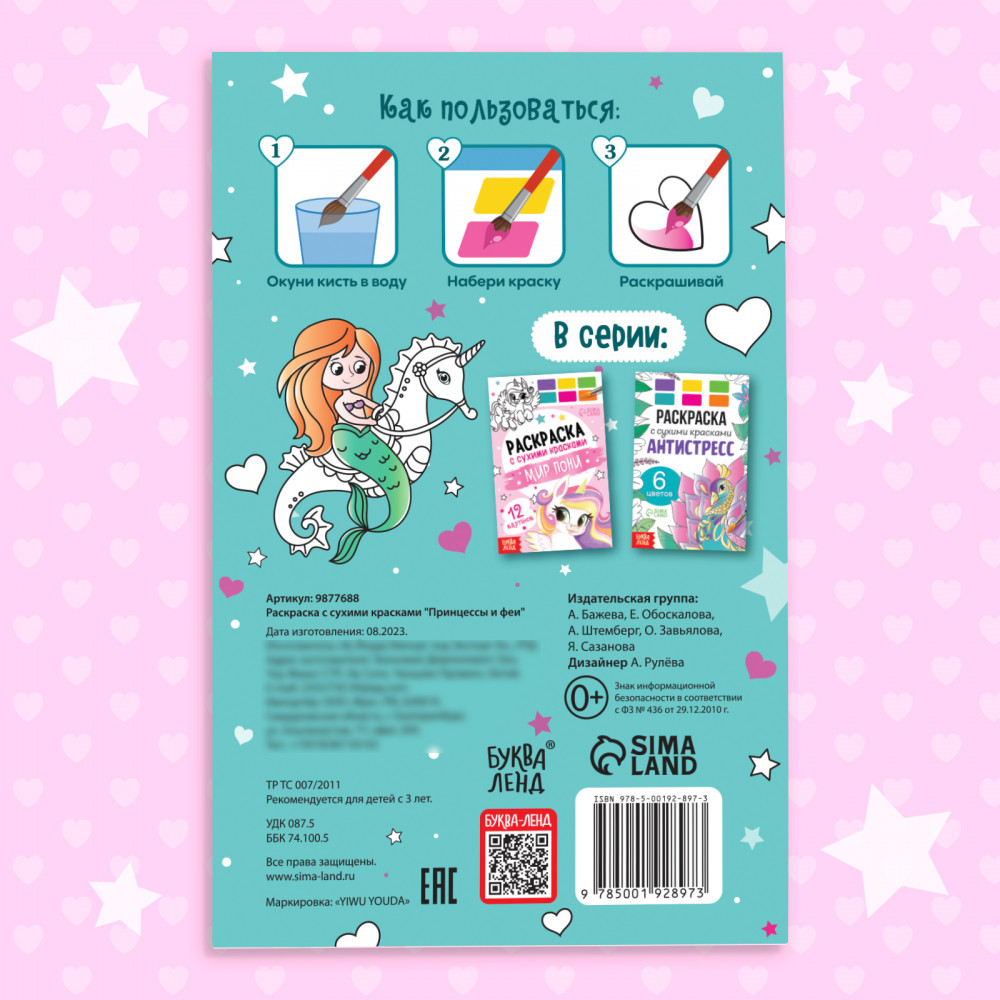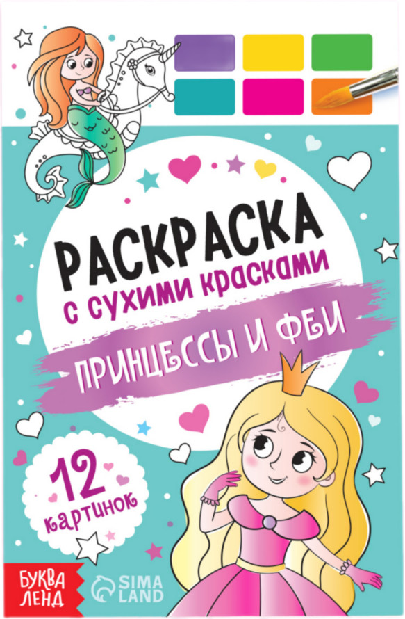 Раскраска акварельная с кисточкой «Принцессы и феи»-25% +9
