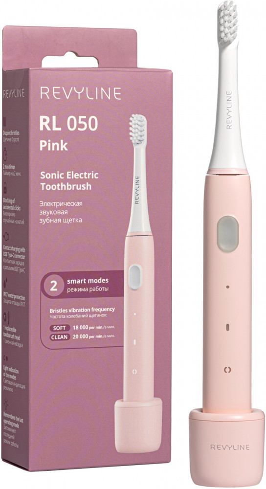 Электрическая звуковая зубная щетка Revyline RL 050 создавалась как эффективный и простой в использовании прибор для ежедневной гигиены полости рта. Модель имеет 2 режима работы, Soft и Clean. Частота колебания щетинок — 18 000 в мин. И 20 000 в мин., соответственно. Revyline RL050 легко заряжается при помощи контактной зарядки с разъемом USB Type-C, имеет таймер на 2 минуты и защиту от случайных нажатий. Благодаря звуковому принципу работы щетки создается эффект кавитации: смесь пасты, слюны и воды образует пузырьки. Схлопываясь, они производят ударные волны, которые отделяют налет от эмали. Важно! Чистка виниров от налета щеткой Revyline RL 050 рекомендована стоматологами.
