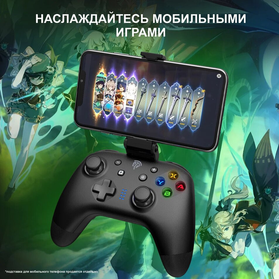 Геймпад идеально подходит для мобильных игр, и не только платформеров, но и экшн и ММО. На геймпад есть возможность установить держатель для смартфона EasySMX VG-C327 (продается отдельно) и насладиться в полной мере погружением в вашу любимую игру» |