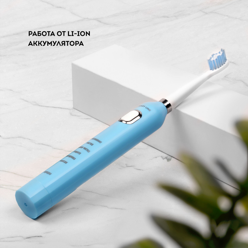 Таймер автоматического выключения срабатывает через 2 минуты непрерывной работы и сообщает об окончании цикла чистки. Щетка располагает шестью режимами, благодаря чему делает чистку зубов более персонализированной — отбеливание, чистка, мягкая чистка, защита от кариеса, полировка и массаж десен. Количество вибрирующих движений до 35000 в минуту, за счет чего щетка не только удаляет остатки еды, налёт из межзубного пространства и пародонтальных карманов, но и отбеливает зубы и массажирует дёсны. Электрощетка имеет энергоемкий Li-ion аккумулятор, что позволяет взять ее с собой в путешествие или командировку. Вам не придется искать розетку — зубная щетка GALAXY LINE GL4980 работает до 1,5 часов в непрерывном режиме без подзарядки. Заряжать щетку с помощью USB-кабеля можно от компьютера, через блок питания или через внешний аккумулятор, если Вы в дороге. Время полной зарядки составляет около 3 часов. Дополнительный комфорт обеспечивает USB-кабель, сменная насадка-щетка и защитный колпачок в комплекте. ЭЭлектрическая зубная щетка Galaxy Line Gl4980 станет идеальным прибором в комплексном уходе за здоровьем ваших зубов, дёсен и полости рта в целом. Позвольте себе лучшее с техникойGalaxy Line.