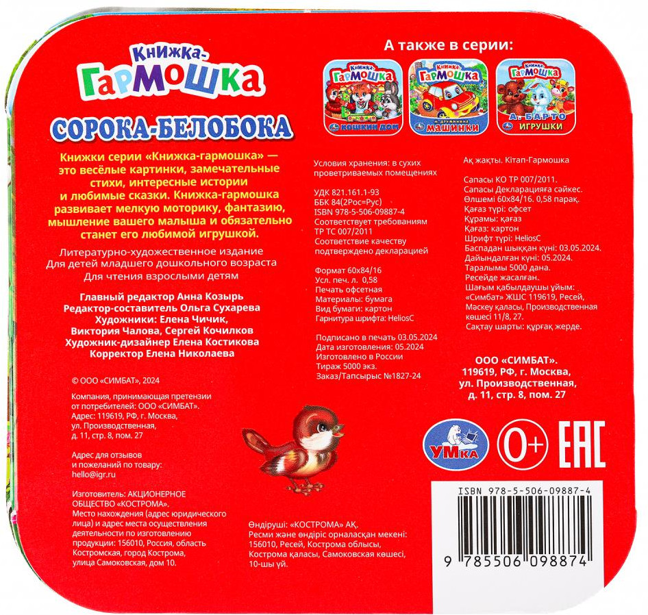 💳 Оплатить за товар можно при получении 🇰🇿 Есть бесплатная доставка по Казахстану от 1 дня 🎁 Копите бонусы с каждой покупки Книжка-гармошка «Сорока-белобока» ТМ «УМка» непременно понравится вашему малышу: |