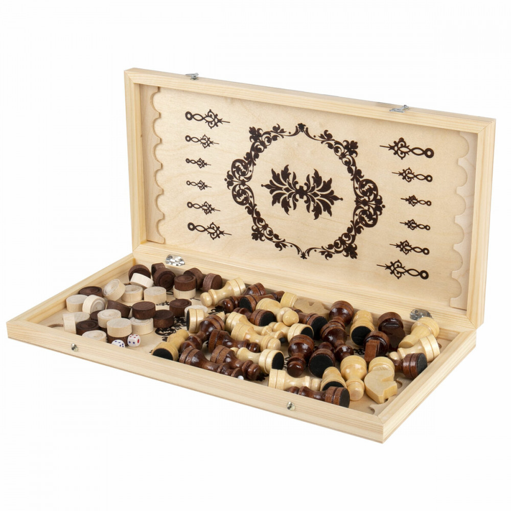 💳 Оплатить за товар можно при получении 🇰🇿 Есть бесплатная доставка по Казахстану от 1 дня 🎁 Копите бонусы с каждой покупки Шашки, шахматы и нарды — три игры в одной коробке. Любая из них помогает развивать логическое и пространственное мышление, память. Идеальный набор для интеллектуального времяпрепровождения. Каждая фигурка дополнительно покрыта глянцевым лаком для блеска. Фигуры изготовлены на специализированном деревообрабатывающем автоматизированном оборудовании. |